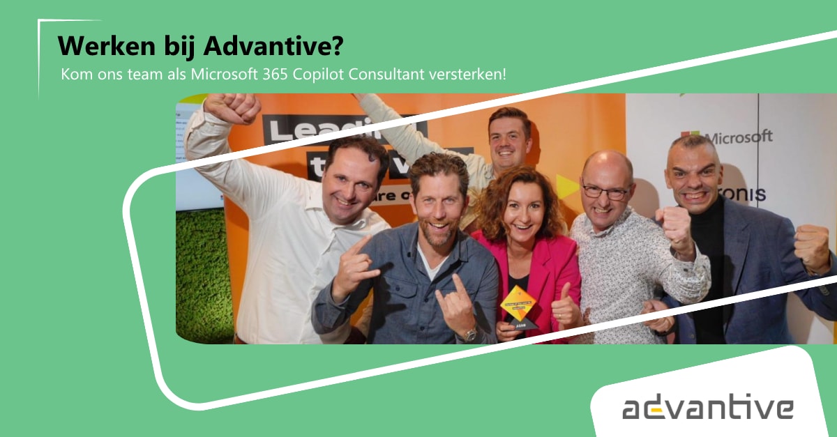 Binnen Advantive krijg je volop ruimte om je te ontwikkelen. Op basis van je ervaring en ambities stellen we een opleidingsprogramma voor je op. Je werkt samen met een ervaren team aan uitdagende Microsoft 365 Copilot en AI-opdrachten en krijgt de kans om je te specialiseren in de richting die bij jou past.